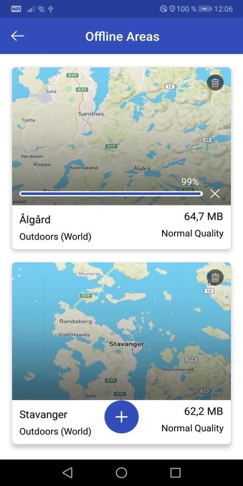 * Mapbox has a total limit of 6.000 tiles downloaded. So if you need new area you may have to delete old area to free up the tile count needed for new area.