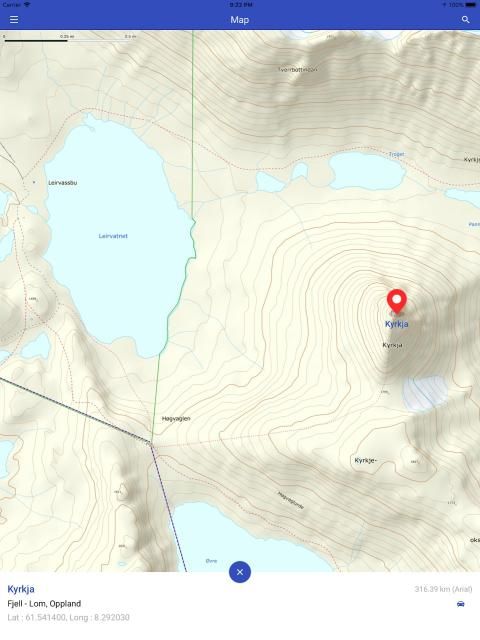Fjellsti menggunakan peta paling detail di Norwegia. Peta disediakan oleh Kartverket (Otoritas Pemetaan Norwegia). Kami juga memiliki peta dunia terperinci dari Mapbox.