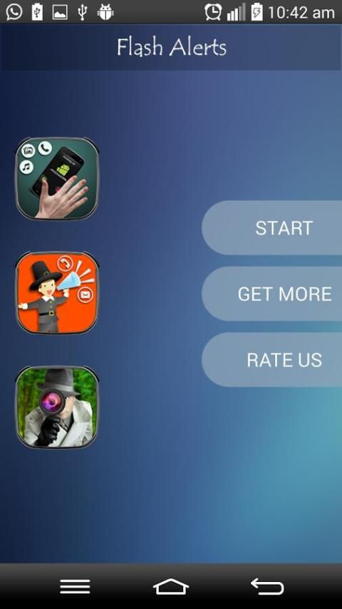 Ame zing applications are the Flash Alerts/notification. It commonly helps to people use it in silent mode or mute or you busy in party or function where you don't listen your phone ringing or vibrating. The Flash Alerts/notification exhibits the incoming calls, or sms, alarm or other. Your camera flash light is blinking. You can customize the blinking of the flash light to your selected from the setting area this application provide different color of flash light.