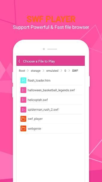 Flash Player For Android - fast plugin swf & flv is aimed to run SWF, FLV, and Flash player android files and let your device display "animated" vector graphics on the Web. SWF file formats allow your device to run