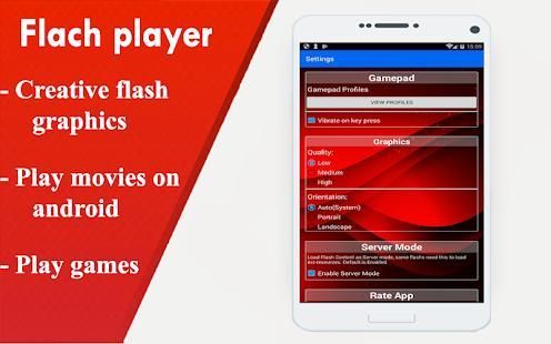 Flash Player for Android - FLV and SWF : use Flash to watch , play game etc. from the Internet or stored locally on the device (including sd-card).with it,And play and run swf files is now possible and easy.If you like flash animations,games,apps you will need it.
