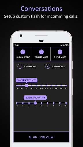 Get flashing alerts and notifications for all incoming phone calls, SMS messages or favorite chat, email or social media applications. FlashX will use your camera flash to create flashing light signals when phone ringing or new SMS message is received. You can setup flashing notifications for any favorite application installed on your device! Choose from two different flash blink modes for phone calls and fully customize your flash effect for both calls and messages. You can enable or disable flashing alerts for calls in normal, silent and vibrate mode. FlashX comes with simple and very handy flashlight feature build in! Select your favorite email, chat or social media app and start receiving flashing alerts for notifications coming from this apps. Make sure notifications access is allowed for FlashX from the device settings!