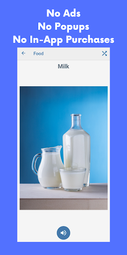 Ajari bayi Anda kata-kata baru, binatang, warna, bentuk, penghitungan, dan banyak lagi! Aplikasi flashcard sederhana, menyenangkan, dan mendidik! Ini cara yang bagus untuk menghibur dan mendidik bayi Anda secara bersamaan! Tonton Bayi Anda Belajar! Bayi Anda akan menyukainya, dan Anda dapat tetap mudah mengetahui tidak akan pernah ada iklan yang tidak diinginkan atau pembelian dalam aplikasi untuk anak Anda secara tidak sengaja mengetuk. Mereka akan diiklankan kepada sisa hidup mereka, mari kita letakkan selama mungkin!
