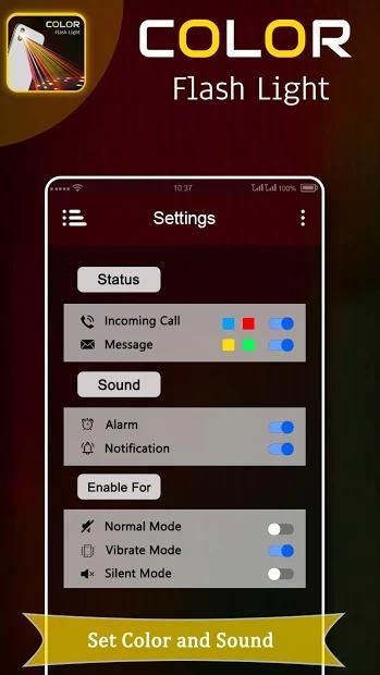 Get flash alert to make sure about call or sms on your cell phone ,and with that multicolor flash alert on call and sms and notification , you choose your color for every activity to know what notification enter in your cell phone like I phone example, so you can customize for every application It’s properly color and blinking flash time .