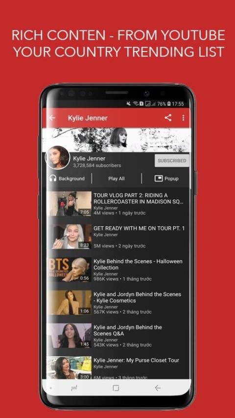 - Pemutar musik YouTube: tonton video Anda dalam layar penuh atau gunakan popup mengambang untuk multitasking