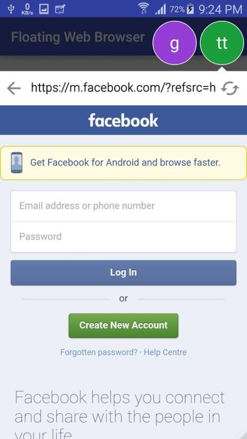 Sebuah chathead Browser popup mengambang untuk membuat web browsing lebih produktif.