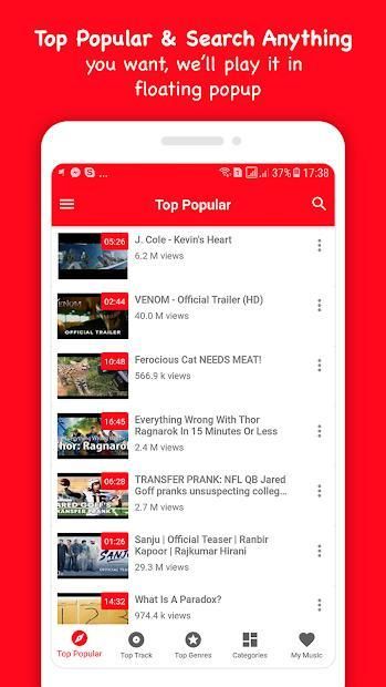 Watching Youtube videos and Listening Youtube music in Popup mode. Or Playing Youtube videos while you are working.