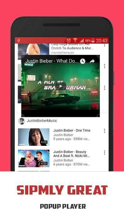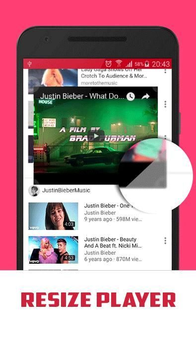 Watch youtube videos in floating mode so that can you can play youtube videos as well as youtube playlist out side the app in floating mode.
