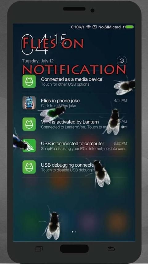 lalat akan ditampilkan di layar ponsel Anda, dan lalat bertindak sangat seperti lalat yang sebenarnya, sehingga Anda bisa bermain lelucon dengan teman-teman Anda.