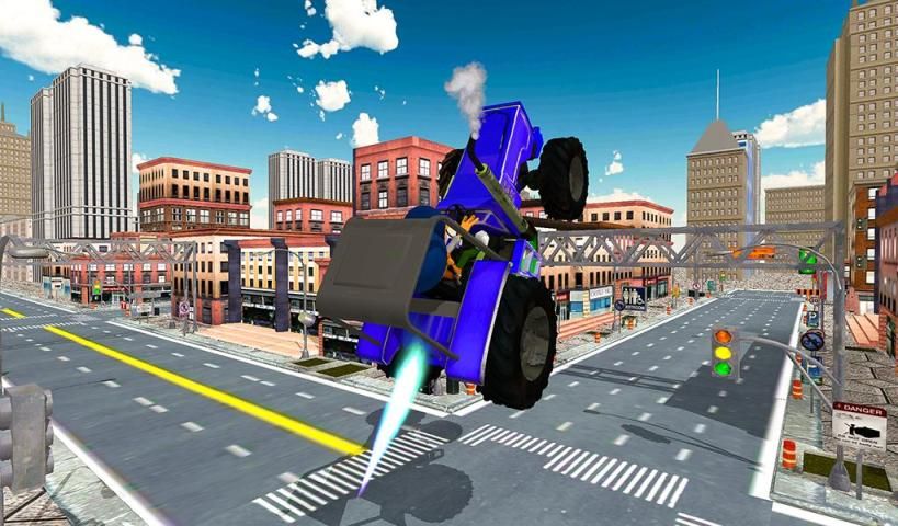 This game comes with a ‘fly’ button that appears on the screen. Press this button and your vehicle will take off. Its wings will come out that will help it to fly in the sky. To change the direction of the vehicle, there will be a joystick controller appearing on the screen.