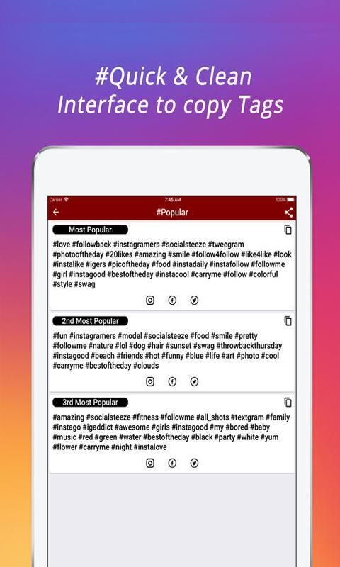 Followers For Instagram adalah aplikasi yang menggunakan Hashtag terbaru untuk mendapatkan lebih banyak suka dan pengikut.