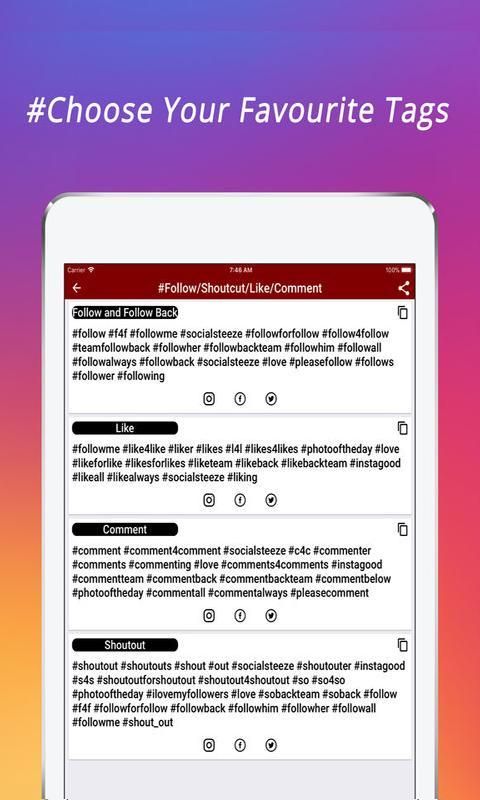 Followers For Instagram is the app in which use latest Hashtags to get more likes and followers.