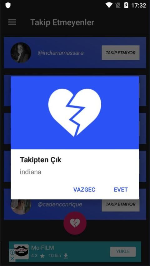 - Takibi Bırakanlar - Sizi geri takip etmeyen kullanıcılar