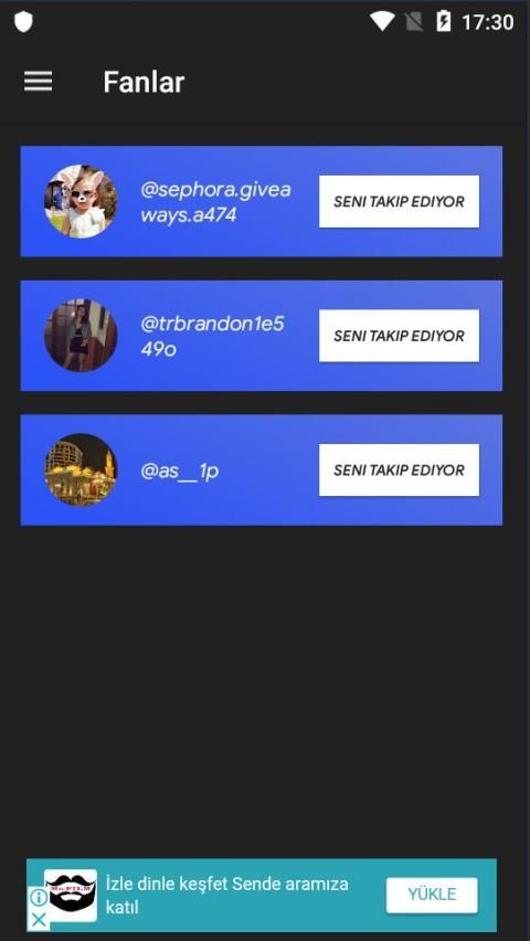 - Karşılıklı takipler - Sizi takip eden ve geri takip ettiğiniz kişiler