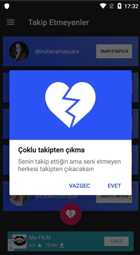 Takibi bırakanlar instagram için en kullanışlı takip etmeyenleri bulma programıdır. Kullanımı kolaydır ve toplu takipten çıkma özelliği ile size kolaylık sağlamaktadır.