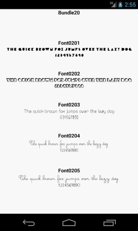 Fonts for Android Samsung Galaxy FlipFont Free telah menghabiskan tahun lalu mengumpulkan font gratis dan membuat aplikasi Android untuk menyediakan pengguna dengan kemampuan untuk mengubah jenis huruf perangkat mereka secara gratis. Menggunakan program huruf changer FlipFont diinstal pada ponsel Samsung Galaxy Anda, Anda dapat menggunakan aplikasi ini untuk menyesuaikan perangkat Anda ke salah satu dari banyak font yang indah yang telah kita kumpulkan. Setiap Bundle font adalah pilihan acak dari 5 tipografi yang telah dioptimalkan untuk digunakan pada perangkat Samsung Galaxy Android. Silahkan menelusuri melalui banyak paket FlipFont kami untuk menemukan gaya font yang sempurna yang sesuai selera Anda.