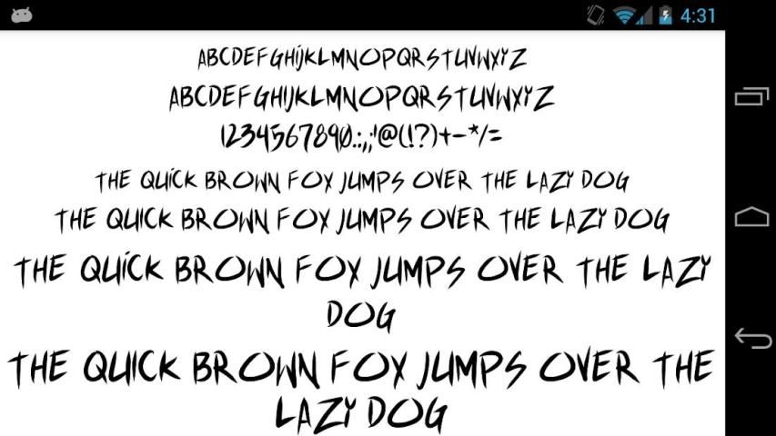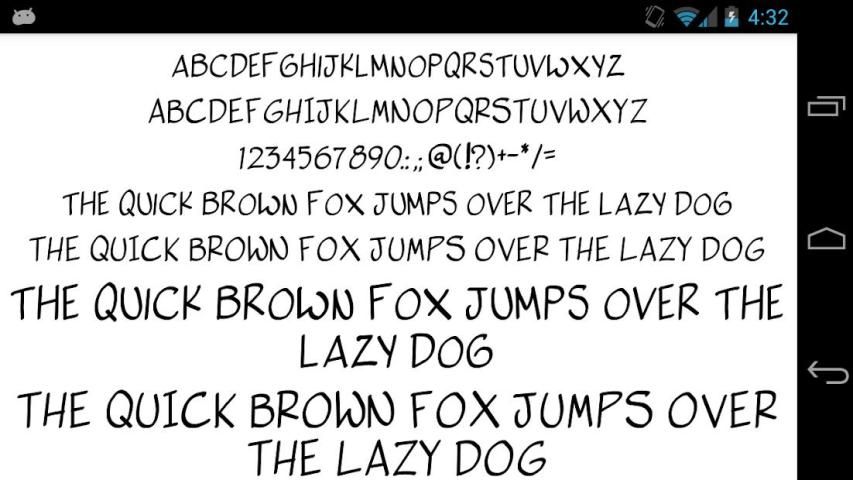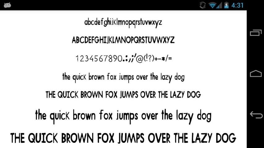 To change fonts on your Samsung Galaxy or HTC Sense 6.0 device, navigate to the display settings in your device's system settings. In the display settings you can change the font style to any of these 50 new fonts for Android. This font pack should work on all Galaxy and Sense 6.0 brand phones and will provide fonts for Samsung Galaxy S3, fonts for Samsung Galaxy S4, fonts for Galaxy Note 3, and HTC One. This app will not work on developer devices, such as the Galaxy Nexus or AOSP Galaxy S4 Google Edition, because it does not have the FlipFont program. Please verify that your phone can change its font. Look for the font style option in the display or screen display section of your device settings. This app is not designed as fonts for android with root and does not require root permission to change your font, nor will it require you to restart your phone.* Also, you will be able to enjoy your fonts for texting and messaging, however the typeface used on your device will not be sent to people that you send a text message to.