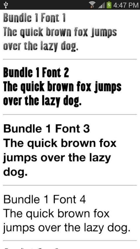 Font untuk Android Samsung Galaxy FlipFont Gratis telah menghabiskan tahun lalu mengumpulkan font gratis dan menciptakan font sandal Android bebas untuk menyediakan pengguna dengan kemampuan untuk mengubah jenis huruf perangkat mereka secara gratis. Menggunakan program huruf changer FlipFont diinstal pada ponsel Samsung Galaxy Anda, Anda dapat menggunakan aplikasi ini untuk menyesuaikan perangkat Anda ke salah satu dari banyak font yang indah yang telah kita kumpulkan. Setiap Bundle font adalah pilihan acak dari 5 tipografi yang telah dioptimalkan untuk digunakan pada perangkat Samsung Galaxy Android. Silahkan menelusuri melalui banyak paket FlipFont kami untuk menemukan gaya font yang sempurna yang sesuai selera Anda.