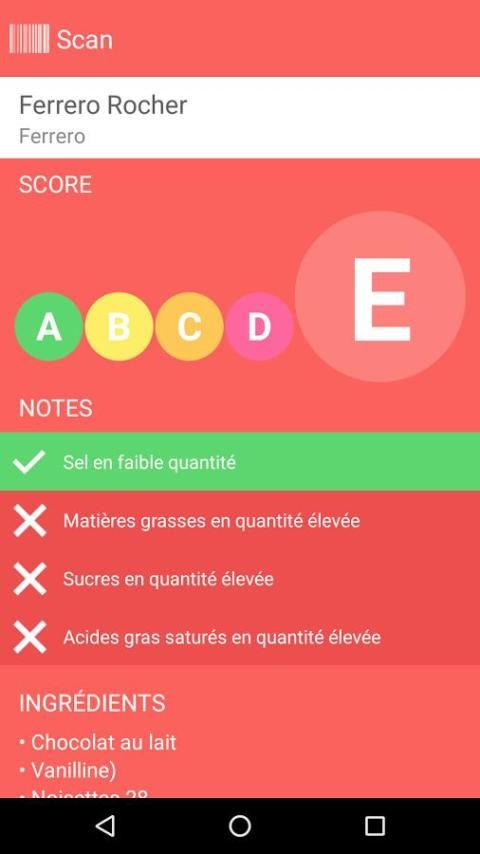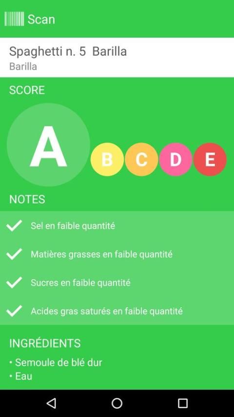 Dengan memindai barcode suatu produk, aplikasi foodgrade menunjukkan dengan jelas jika produk itu sehat atau tidak, dengan skor mulai dari A ke E, serta informasi gizi dari produk. Algoritma ini secara langsung terinspirasi oleh karya tim dari Program Kesehatan Profesor Hercberg Nasional Gizi dan.