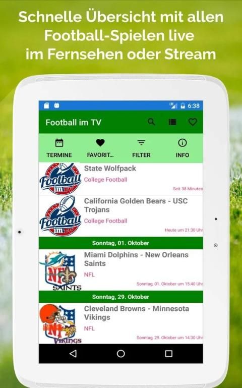 Pernahkah Anda kesal karena sepakbola ditayangkan di televisi dan Anda belum diaktifkan dalam permainan di tengah? Itu tidak terjadi Anda dengan aplikasi ini. Di sini Anda dapat menemukan semua tanggal yang Football hidup acara TV.