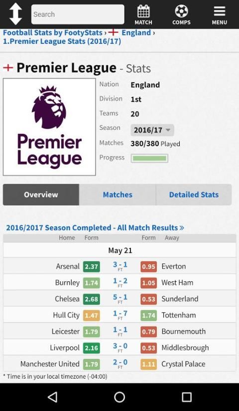 Kami menyediakan analisis statistik di-play, yang akan memberitahu Anda ketika skor tim atau mengakui tujuan mereka di musim ini. Fitur ini sangat berguna untuk pemahaman bermain dinamika masing-masing tim sepak bola.