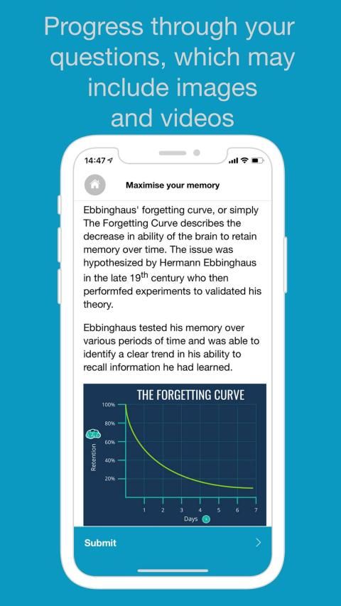 Once registered with your organisation, you'll start receiving questions immediately and you'll be prompted to revisit them at varying times until you've mastered them.