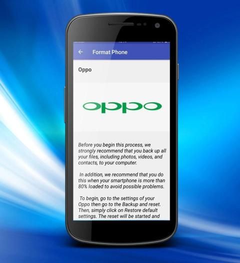 Feeling frustrated because it takes 10 minutes to run an application? You mistakenly change a setting or something that you should not do and not be able to return to the original state? Or do you find some constant bugs hard to remove? It may be time for a formatting of your phone. Formatting erases all data currently stored in the device and returns all settings to the original state.