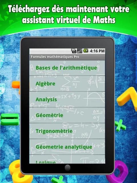 Ini adalah versi gratis dari formules Mathématiques Pro aplikasi yang bisa Anda dapatkan dari https://play.google.com/store/apps/details?id=com.anjokes.apps.math.fr.pro.