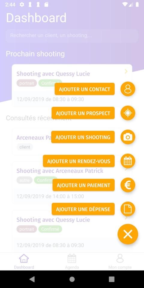 - accès rapide à vos contacts et shootings;