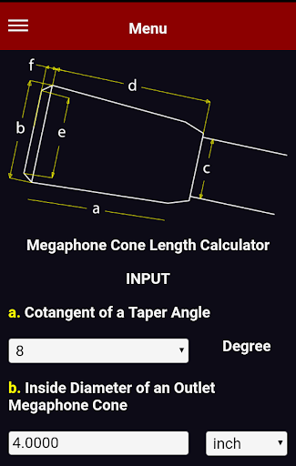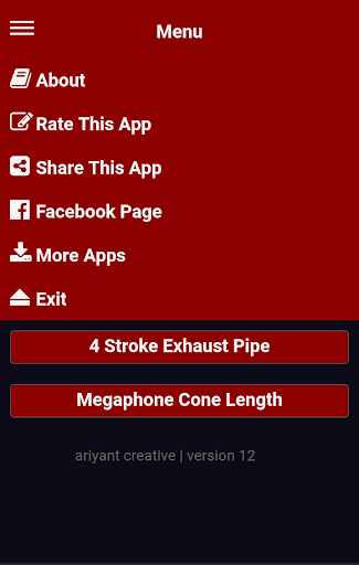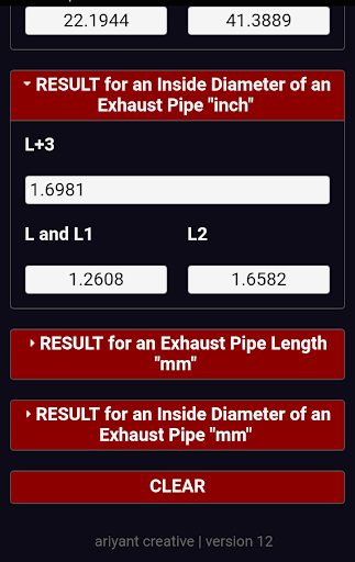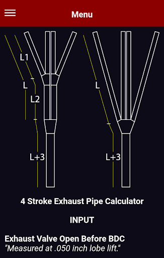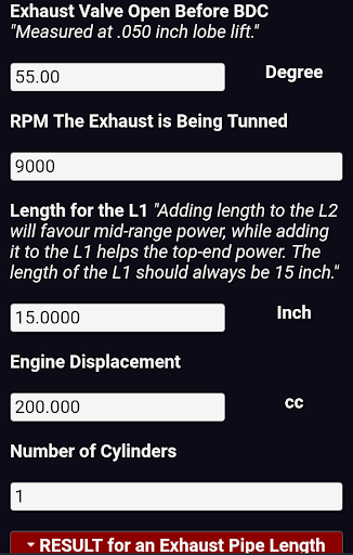 This app is recomended for an Engine Builder's. This app can be use for finding inside diameter and length of Four 4 stroke exhaust pipe with specific/type of an engine e.g. racing, drag race, grasstrack/trail/trial.