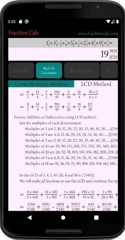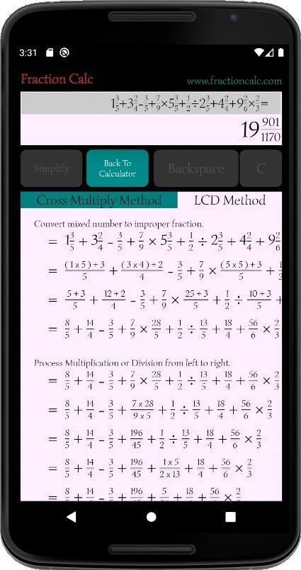 Fraction Calc is a fraction calculator app designed to compute from basic to complex calculation such as the combination of mixed number, improper, and proper fraction.