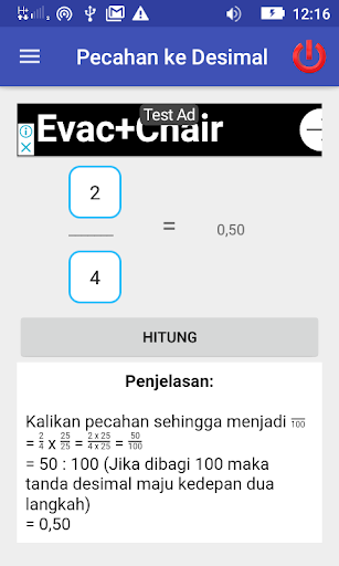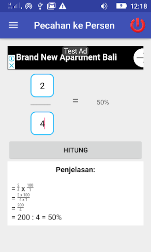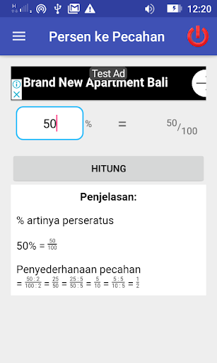 Aplikasi untuk mengkonversi dari pecahan ke desimal, persen dan sebaliknya