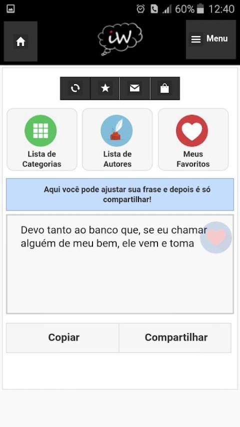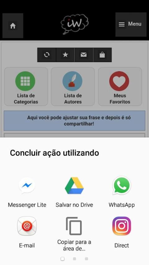 [✔] Compartilhar frases pelo WhatsApp, Facebook, Instagram, Twitter, Tumblr.