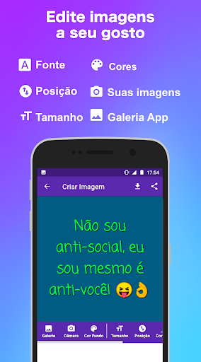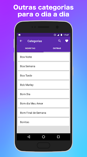 Aplikasi tidak langsung memungkinkan Anda untuk membuat gambar dengan frasa tidak langsung khusus menggunakan foto dan frasa favorit Anda. Anda juga akan menemukan kategori status dan foto lainnya, termasuk motivasi, lucu, subtitle, tanda, kemarahan, sajak cinta dan dinyanyikan.