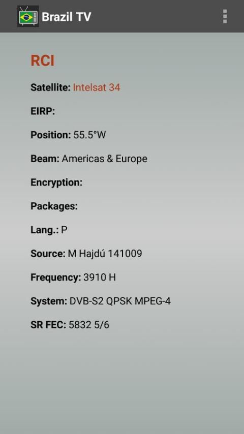 Brasil Saluran TV aplikasi menyediakan semua informasi untuk setup penerima satelit Anda untuk menonton saluran TV gratis di Brazil.