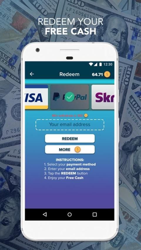 Dengan Kas Gratis kami - Membuat aplikasi Money Online, Anda dapat menebus sistem pembayaran kartu hadiah yang paling populer seperti PayPal, Visa, Skrill, Neteller dan Paytm dengan hanya menonton video, menyelesaikan penawaran dan bermain game keren! Mendapatkan uang di kapan saja Anda inginkan dan berhenti membuang-buang waktu pada berguna non-membayar membuat aplikasi uang!