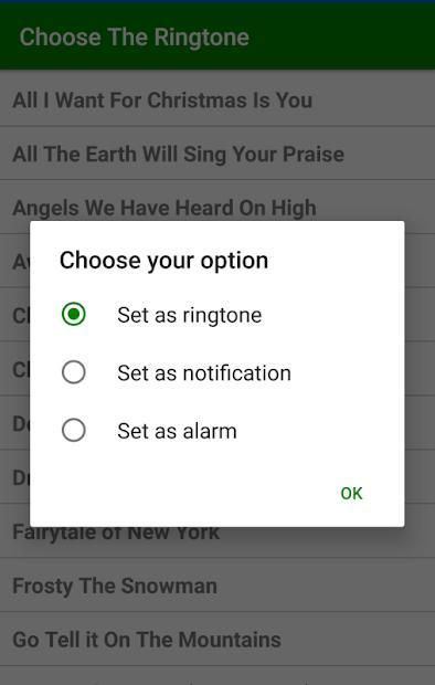 Ringtone feature. Each Christmas Song can be set as Ringtone, Notification, or Alarm for our Android gadget.