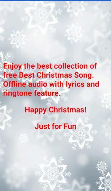 Enjoy the best of most popular Christmas Songs in high quality offline audio. Install and enjoy the Christmas Carol right in your Android Gadget. It is completed with lyrics so we can fully enjoy the best Christmas experience. Can be enjoyed without Internet connection. Each Christmas Song can be set as Ringtone, Alarm, or Notification.