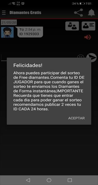 En esta app sorteare cada 24 horas 341 diamantes para Free fire