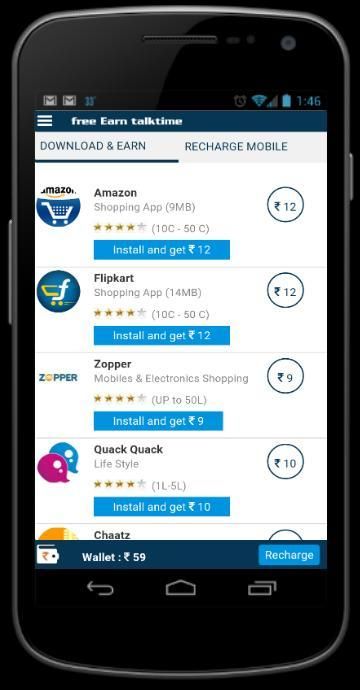 Free earn talktime makes user to earn mobile recharge free. User can earn money by downloading the free android apps or register on it from your mobile. When user install app which he has not install before, they get some amount in their wallet. They can recharge their mobile from this wallet balance
