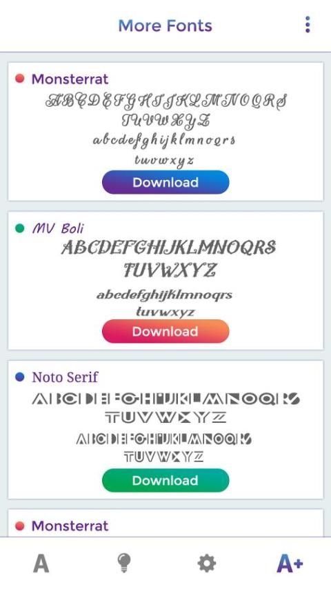 Saat ini, kami menemukan aplikasi yang sangat populer. 20,000+ Pengguna mendownload Free Fonts For Fashion Style versi terbaru di 9Apps secara gratis! Untuk pemain yang ingin memainkan keduanya, karena aplikasi ini bagus dan memiliki respon yang selalu cepat. Aplikasi HOT ini di rilis tanggal 2017-11-28. Pastikan anda memeriksa aplikasi yang ada, sebelum menggunakannya.