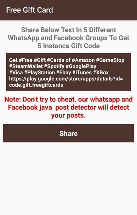 Catatan: Aplikasi Free Gift Card Generator Hasilkan kode dummy. Ini mungkin atau mungkin tidak bekerja.