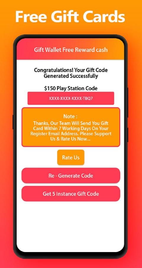 ✔ Share this app 10 Facebook and WhatsApp group to get 5 instance gift cards code free.