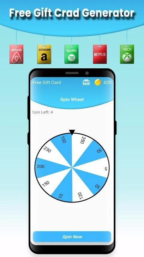 Free Gift Card Generator by play unlimited spin wheel, watching short promotional video, inviting friends and sharing.