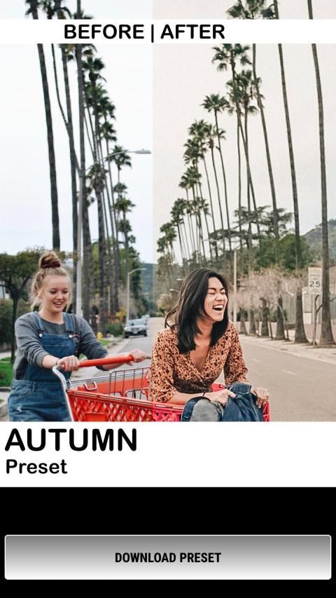 - 10 Instagram Tones: Bright, Orange, Autumn, Elite, Influencer, Portrait, Desert, Soft Pink, Selfie, California