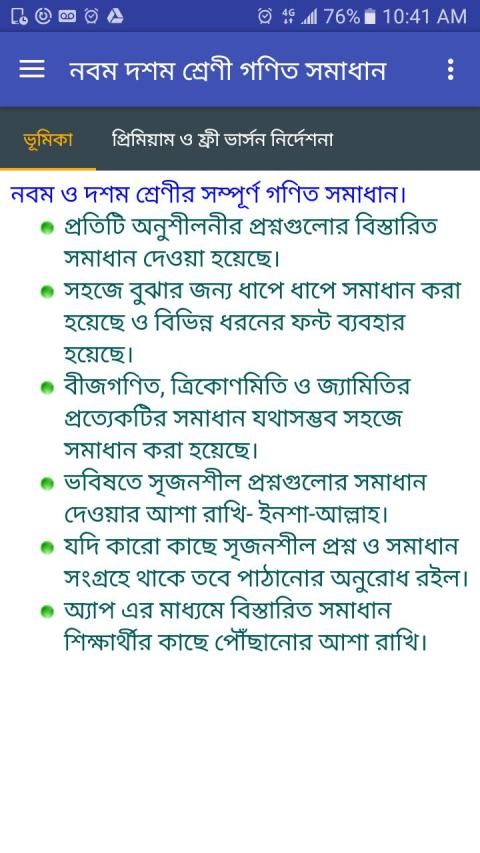 Aplikasi ini berisi solusi matematika lengkap dan formula di bangla untuk kelas sembilan dan sepuluh untuk bangldesh buku teks dewan pendidikan.