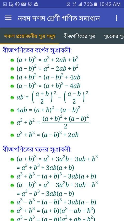 This app contains complete math solutions and formulas in bangla for grade nine and ten for Bangldesh education board text book.