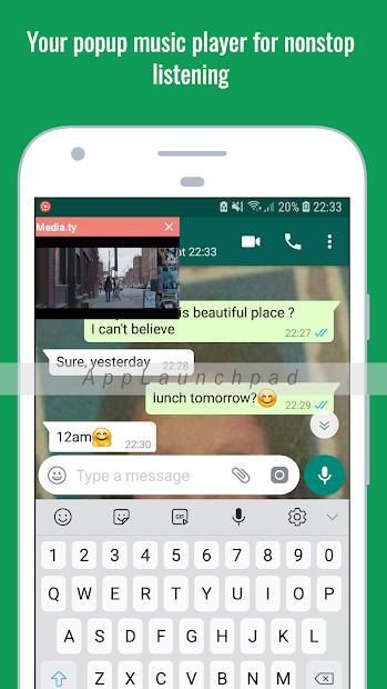 Our app gives you access to all of Youtube music videos and lets you play them in a floating popup with a multitasking music listening experience.