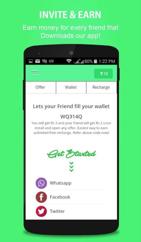 Merujuk aplikasi untuk teman-teman Anda dan mendapatkan upto Rs 1000 atau lebih mengisi ulang gratis.