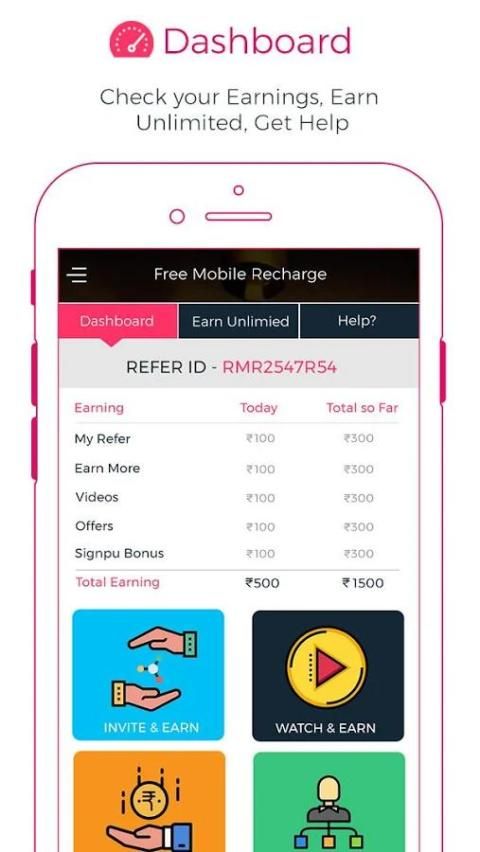 penawaran lengkap atau mengundang teman-teman dan ketika saldo account Anda mencapai minimal Rs.10, mengisi ulang setiap ponsel prabayar secara gratis.
